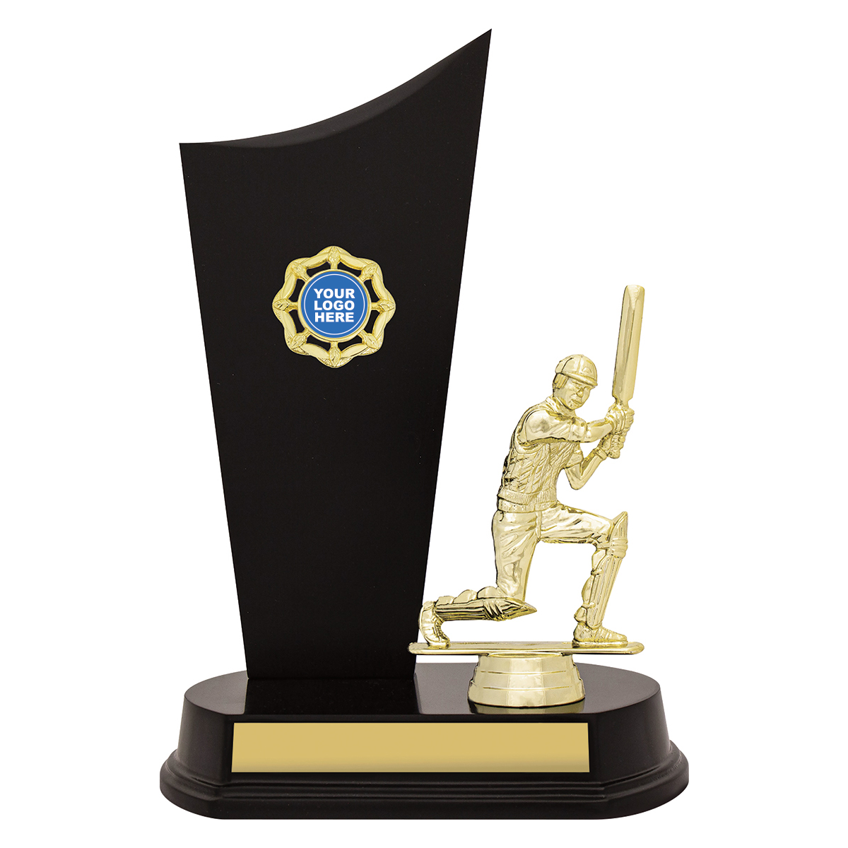 Striking series of timber wing based trophies - multiple sizes and space for your logo insert. Tops for all sports available. Batsman and bowler figurines available for cricket.