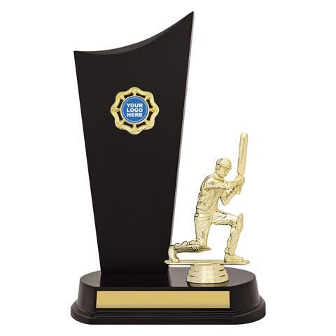 Striking series of timber wing based trophies - multiple sizes and space for your logo insert. Tops for all sports available. Batsman and bowler figurines available for cricket.