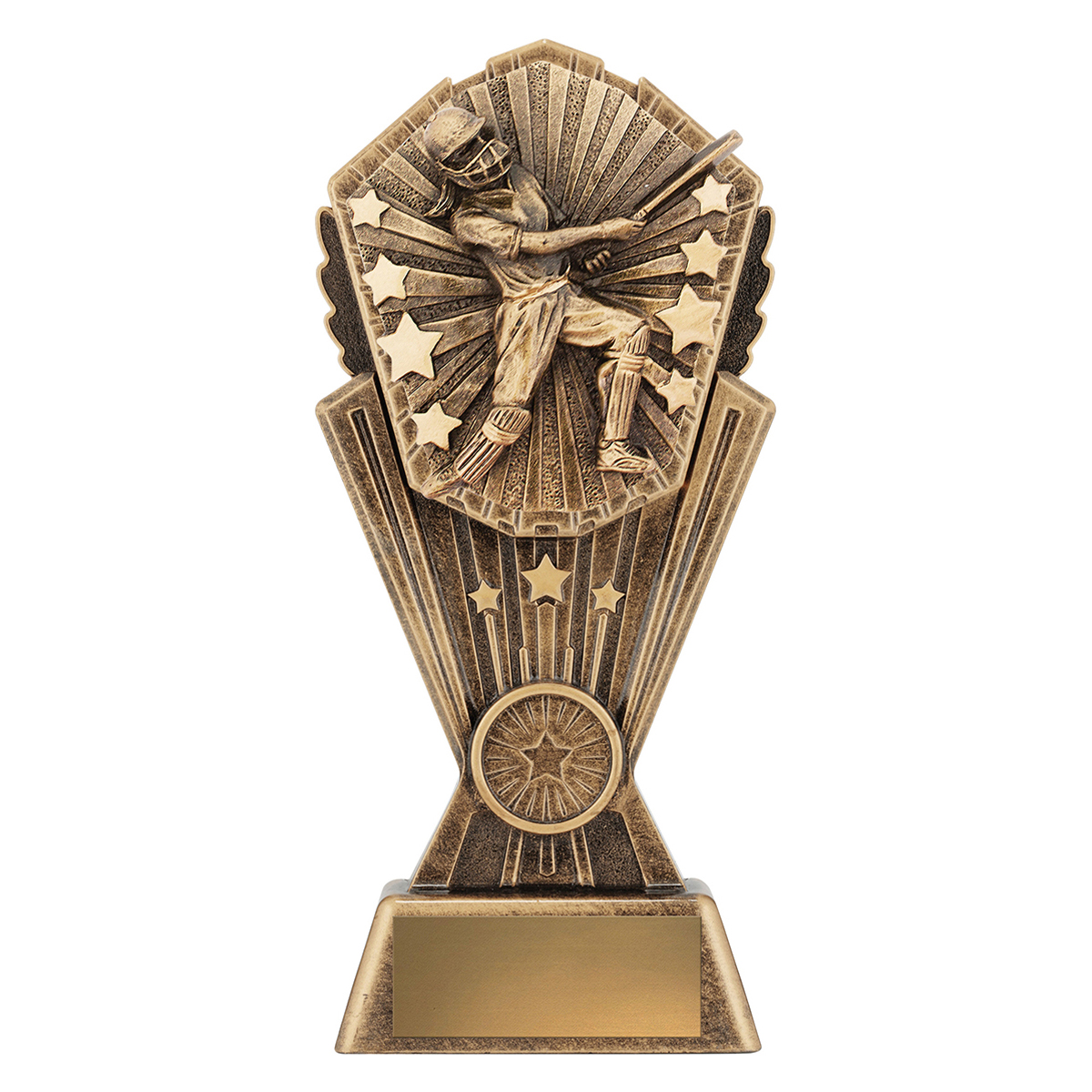 Brilliant series of 'Cosmos' trophies for batting awards. Available in male or female. Cricket trophies available in 3 sizes with space for insert.