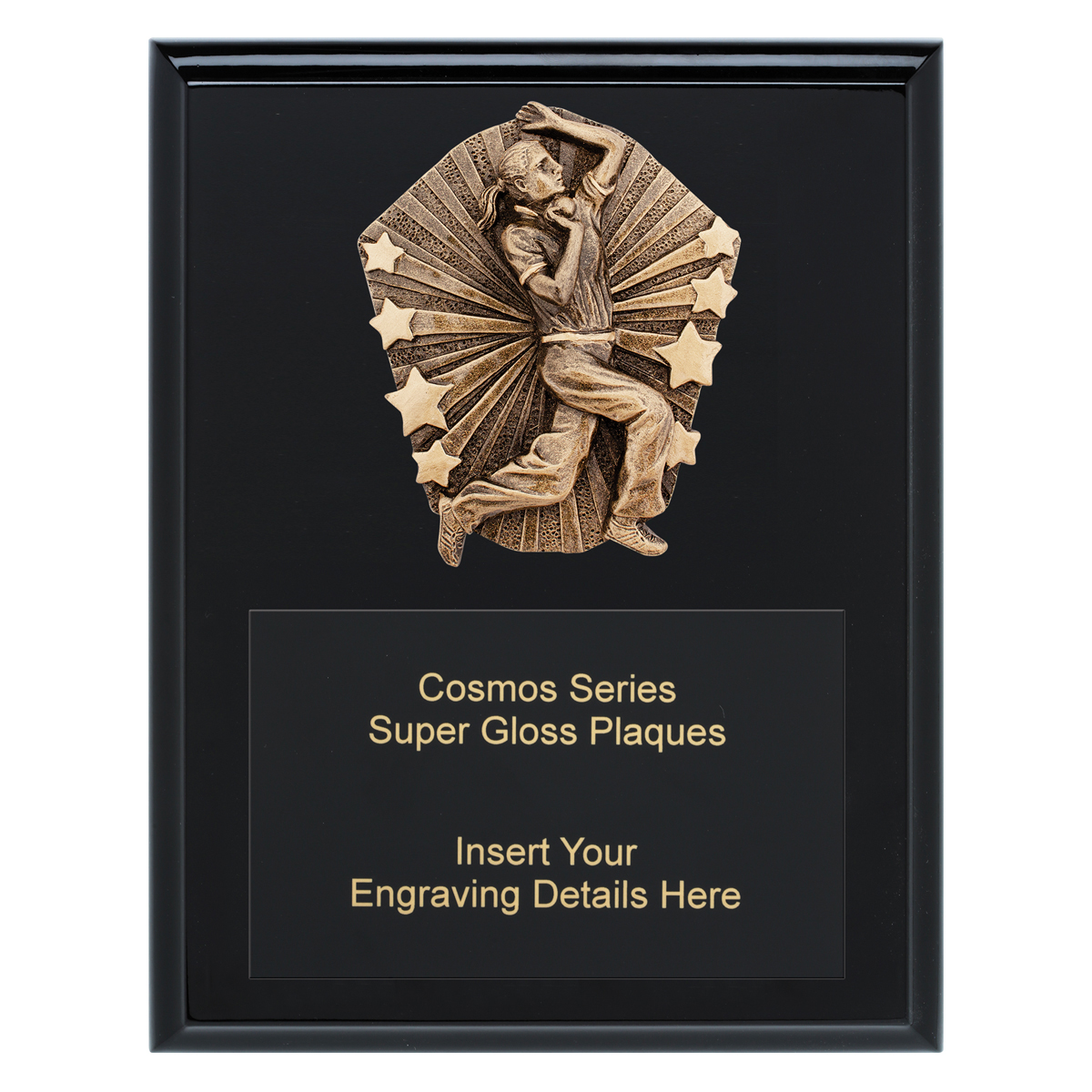 Range of super gloss plaques in classic black with brilliant Cosmos fronts and matte black engraving. Choose plaque - available in 3 sizes - to suit your sport or activity.