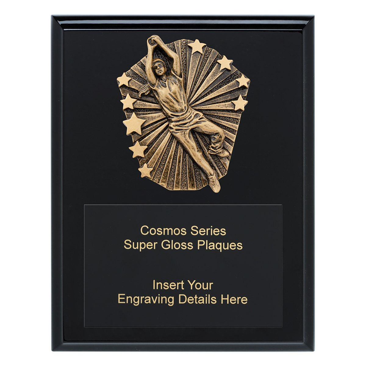 Range of super gloss plaques in classic black with brilliant Cosmos fronts and matte black engraving. Choose plaque - available in 3 sizes - to suit your sport or activity.