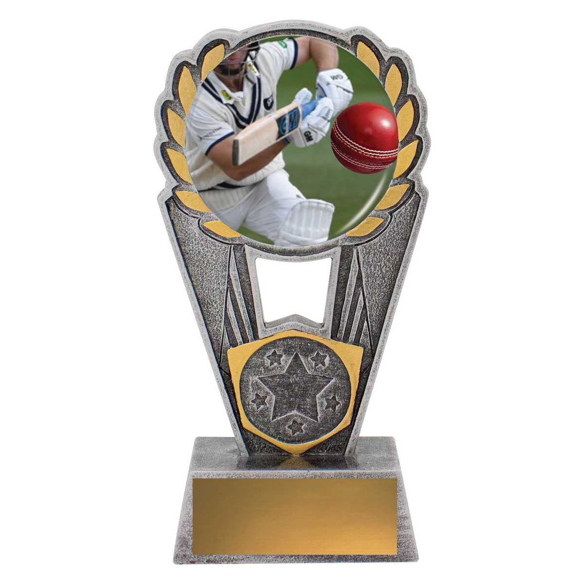 Polaris series offers a striking design of trophy with excellent options for personalisation. Trophies showcase a theme featuring a cricket batsman in action. Space for your 25mm logo if required.