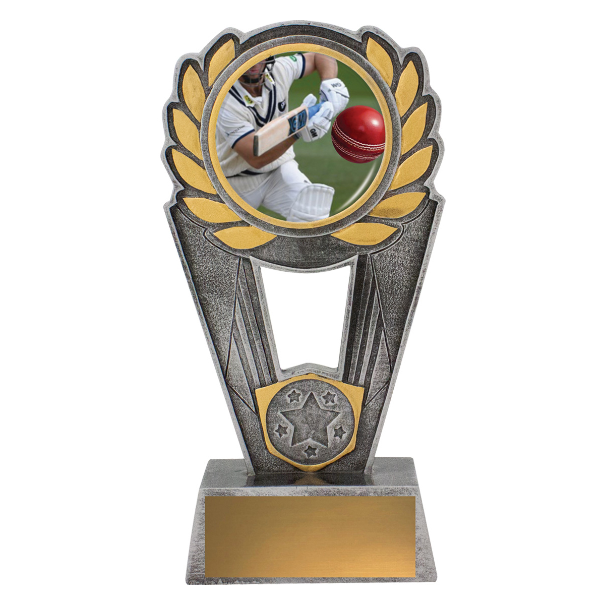 Polaris series offers a striking design of trophy with excellent options for personalisation. Trophies showcase a theme featuring a cricket batsman in action. Space for your 25mm logo if required.