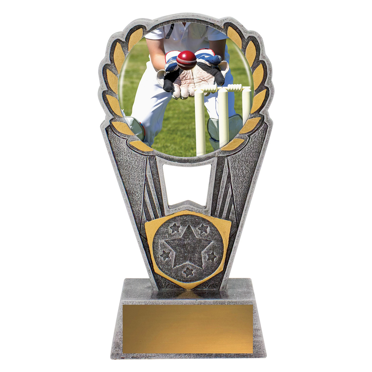 Polaris series offers a striking design of trophy with excellent options for personalisation. Trophies showcase a theme featuring a wicketkeeper in action. Space for your 25mm logo if required.