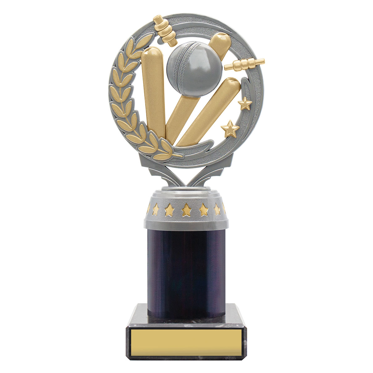 Series of excellent value cricket trophies - Torch offers a great design with iconic features on shiny black columns.