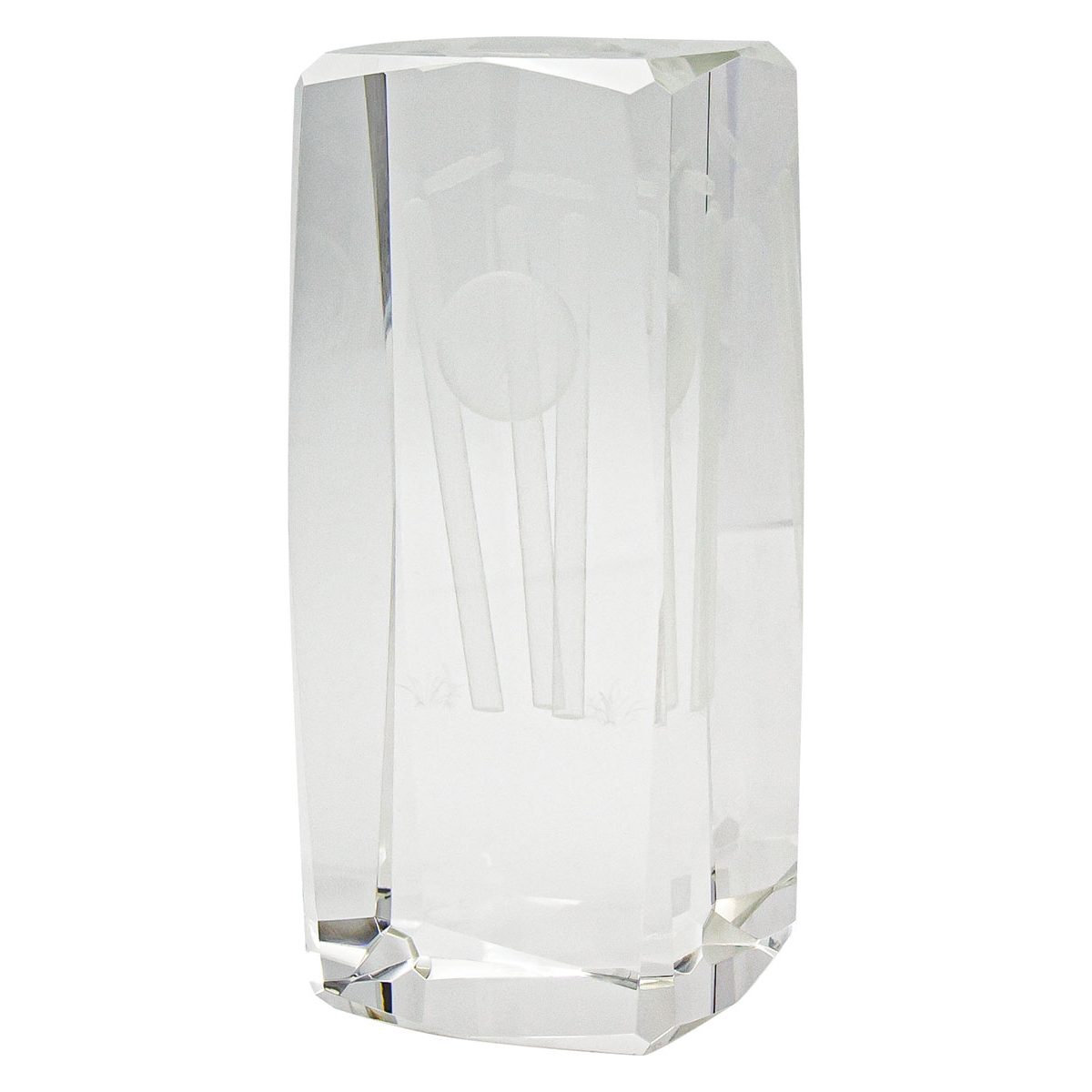 This crystal trophy is an affordable award for a top performer in your team or club. Nice piece of crystal finished with 3D hologram cricket design is an alternative to traditional cricket awards. Available in a presentation gift box.