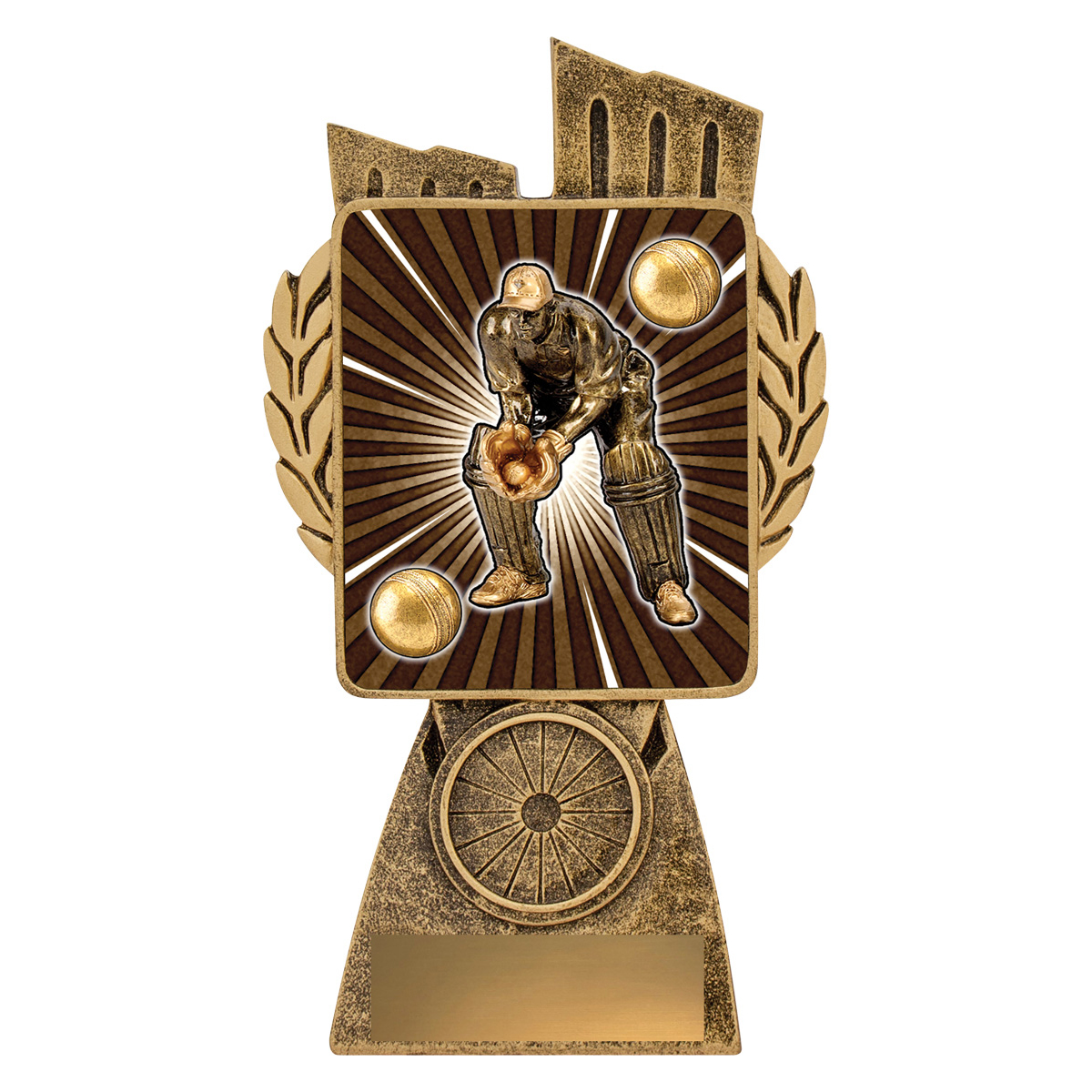 Lynx Trophies represent a flexible series covering all different awards required by your team or club. Featuring a classic wreath and vibrant design, this particular series is for wicketkeeping. Space for 25mm centre insert.