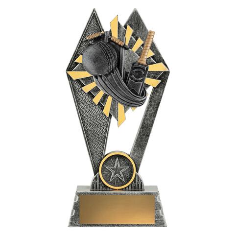 The Peak Series - for Cricket - is an innovative trophy series offering super value for such an impressive size range. An elevated design that showcases the bat & ball elements against a vibrant sunray style background.