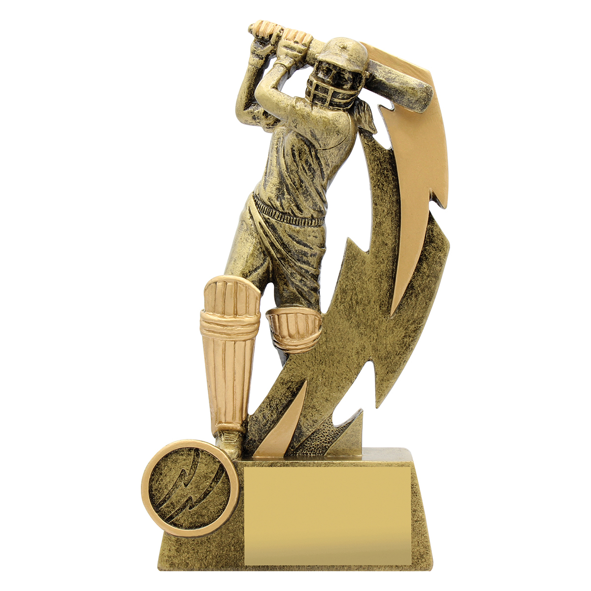 Cricket Shazam Batsman series in female showcases the driving batsman with excellent detail. Cricket trophies completed in classic trophy gold colours and available in 4 convenient sizes. There is the option if required of including your logo.
