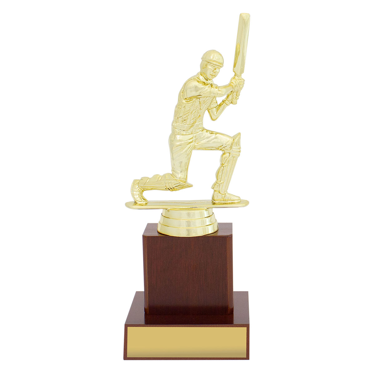 Classic timber trophies suitable for a range of awards. Cricket trophies finished in traditional bright gold. Multiple sizes available.