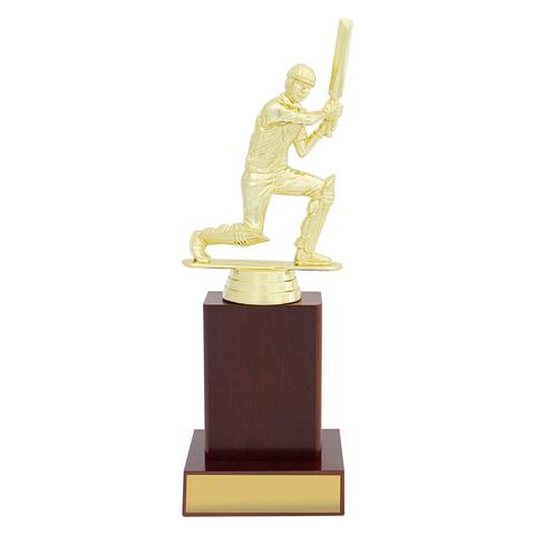 Classic timber trophies suitable for a range of awards. Cricket trophies finished in traditional bright gold. Multiple sizes available.