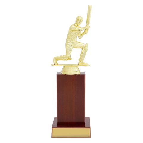Classic timber trophies suitable for a range of awards. Cricket trophies finished in traditional bright gold. Multiple sizes available.