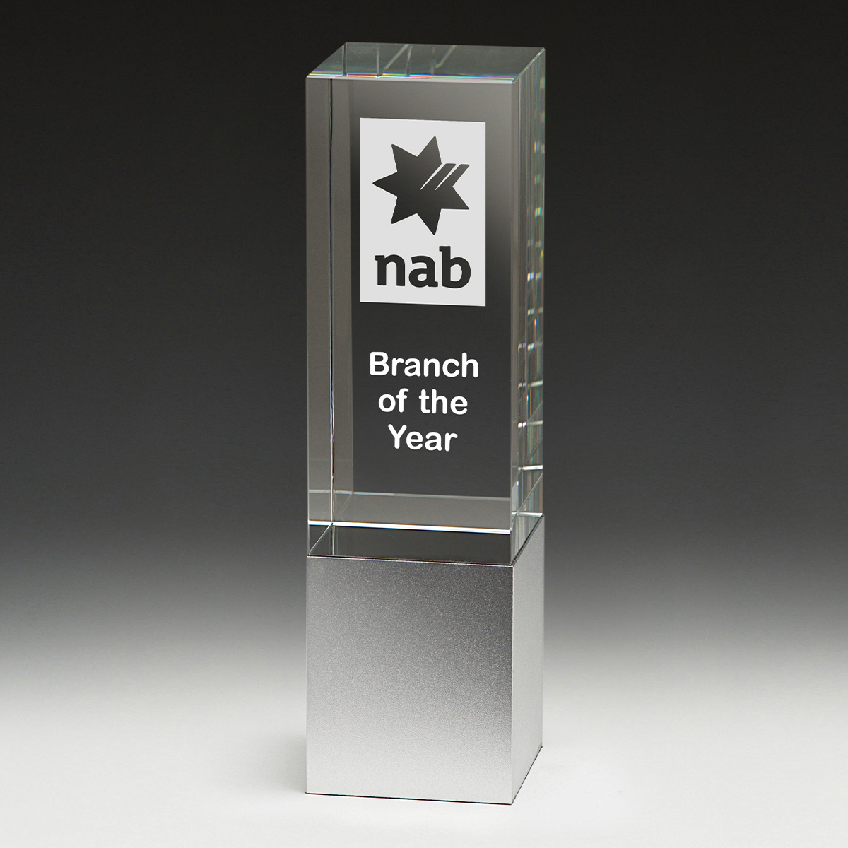 Solid and universally designed crystal tower shaped block, the Crucible presents values such as strength and unity. A versatile award design for various fields of industry and activity.
