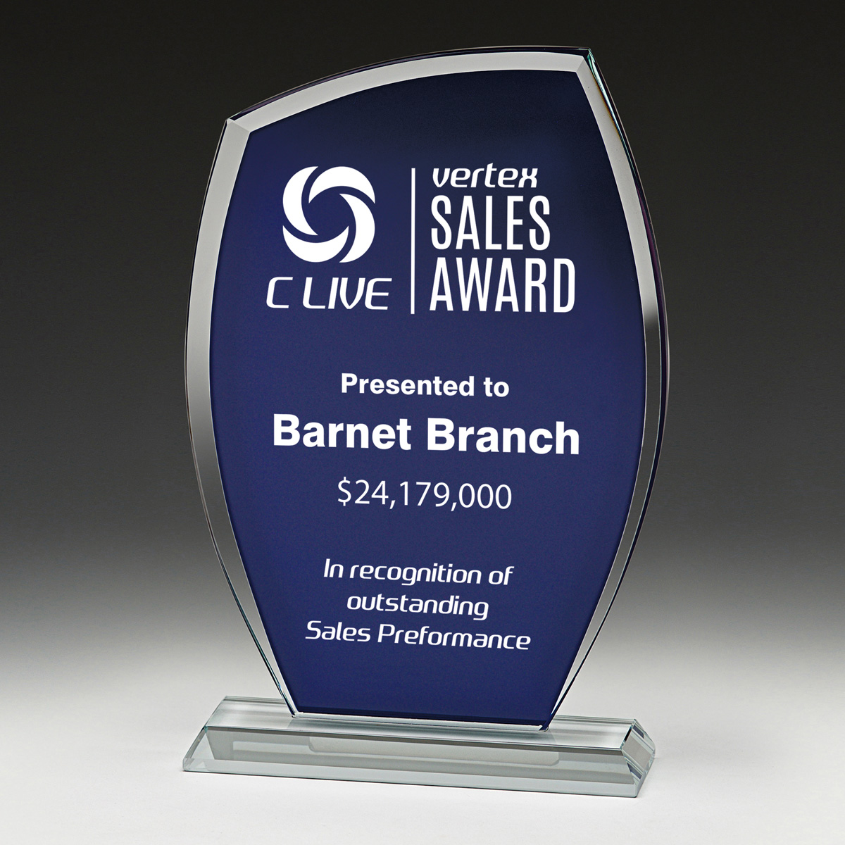 Sophisticated range of crystal awards with striking blue panelling effect that allows for precision engraving to elevate your awards.