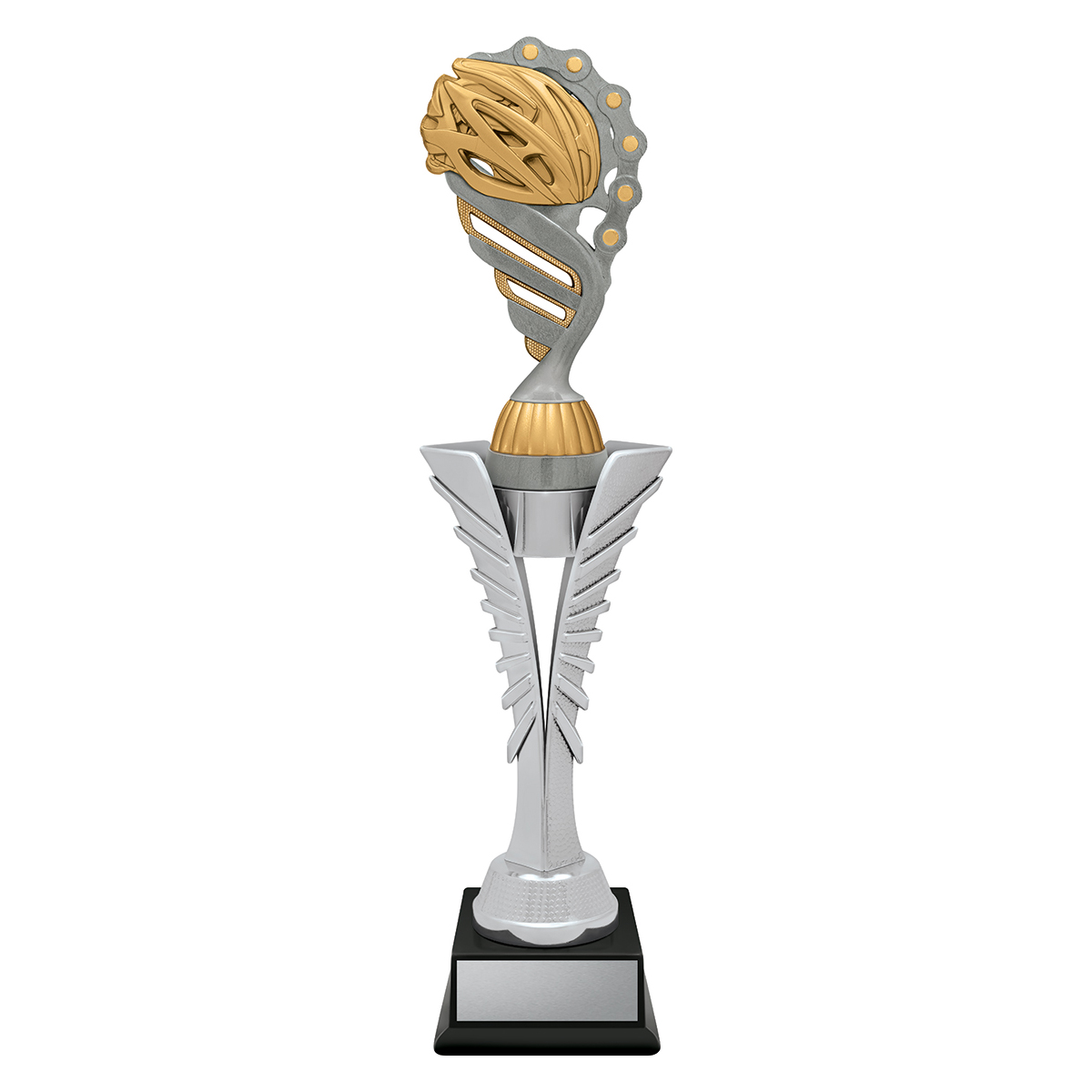 Silver Spear trophies showcase a brilliant top on a distinctive "spear" riser - the top finished in antique silver. Available in 3 sizes.