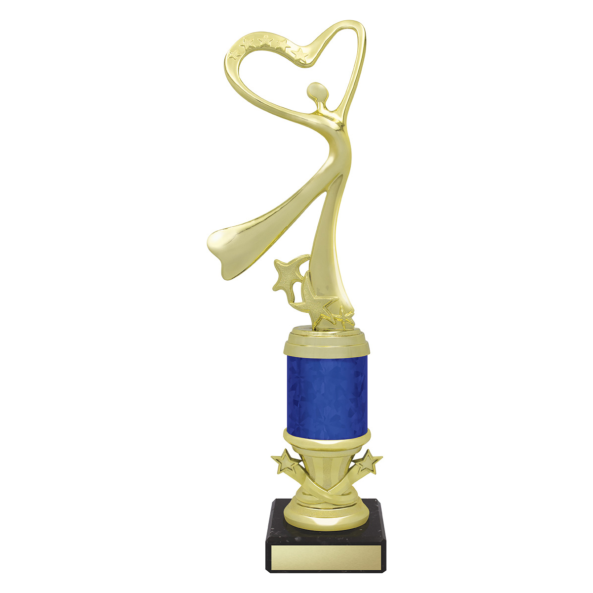 Perfect trophies for dance & performing arts with the star riser feature and finished with a fantastic abstract style dance top. Change colour of column to suit.