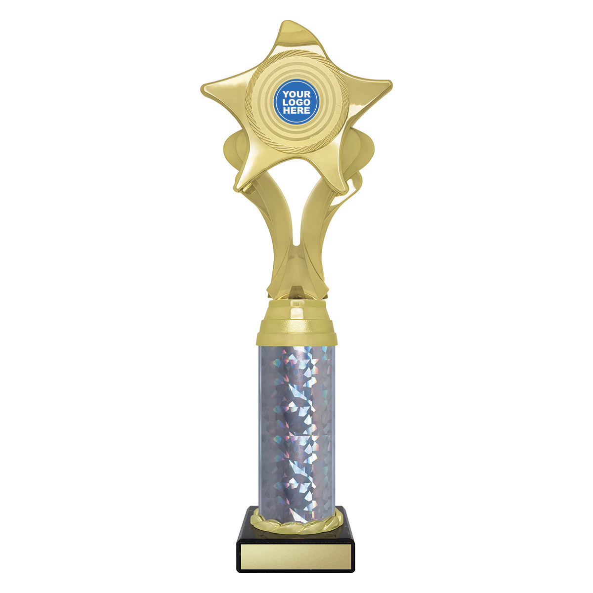 Radiant Athena holder series of trophies perfectly shows off your custom logo over a number of sizes. Choose colour combination to best suit your awards.