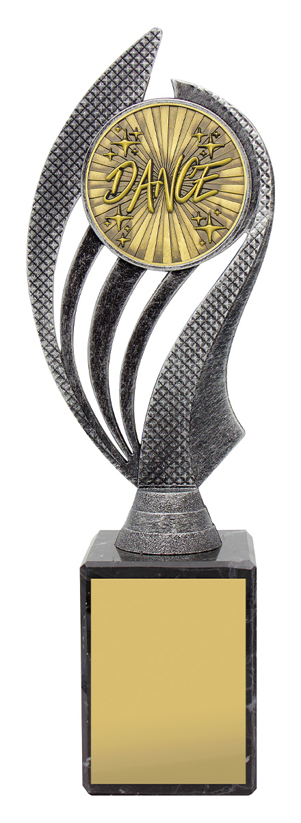 Husky series of trophies on premium black marble allows for different award options for your activity. Appealing antique silver and gold combination over number of sizes.