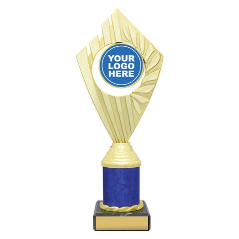 Flyer Series of trophies feature beautifully designed holders on columns of different colours - option to showcase 25 or 50mm logo or insert.