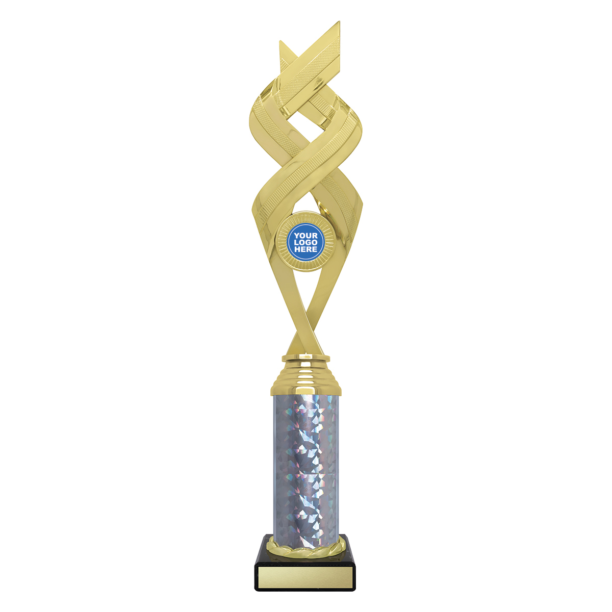 Stylish Jetstream series of holder trophies feature a complex design of intertwining elements and a central spot for your custom logo. Available in different colours.