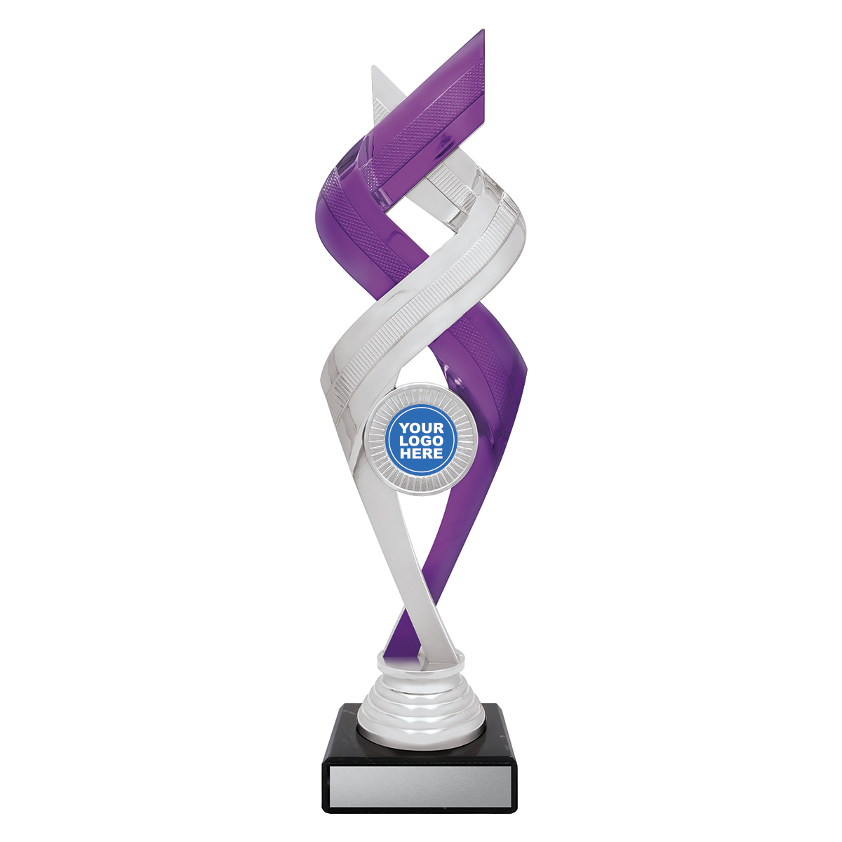 Stylish Jetstream series of holder trophies feature a complex design of intertwining elements and a central spot for your custom logo. Available in different colours.