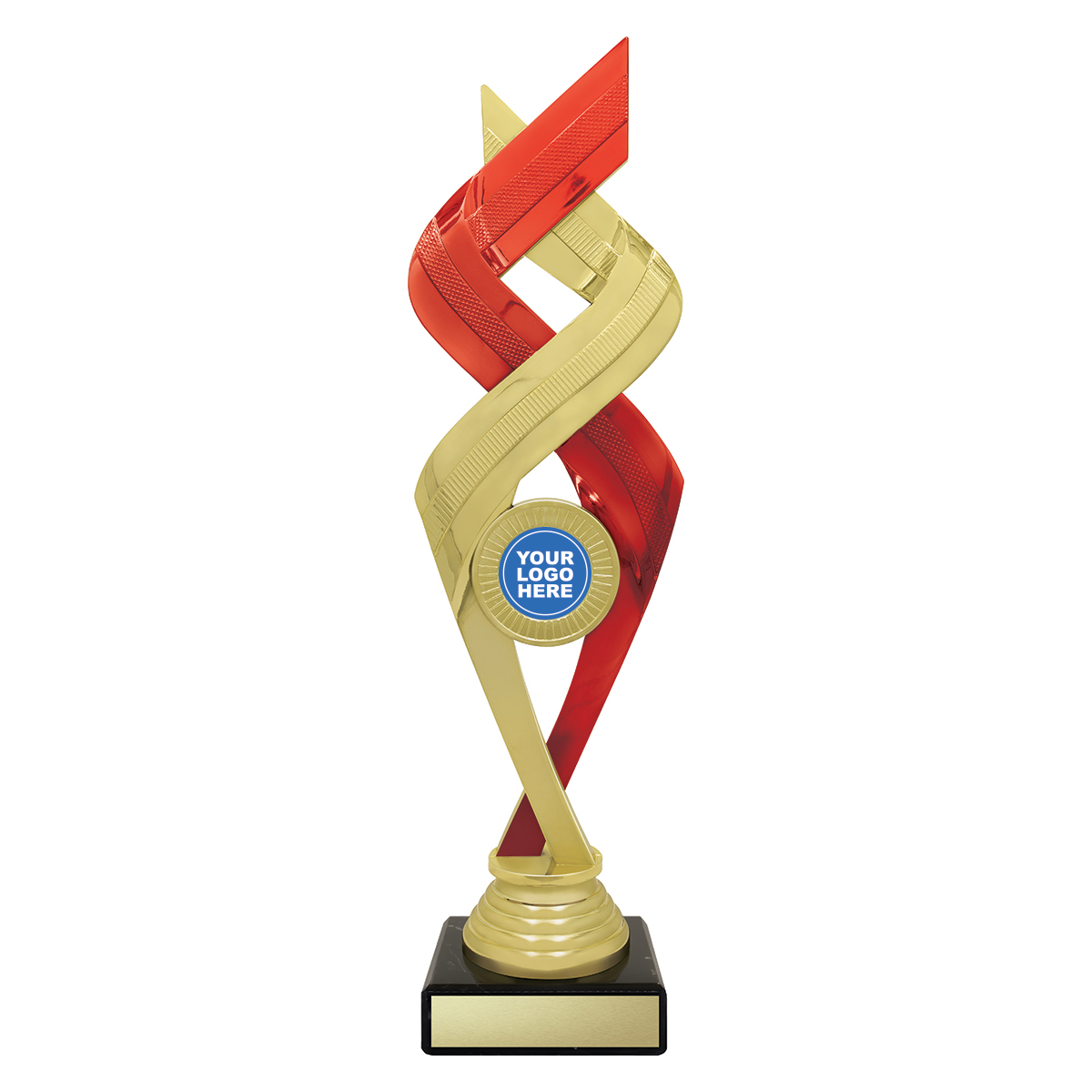 Stylish Jetstream series of holder trophies feature a complex design of intertwining elements and a central spot for your custom logo. Available in different colours.