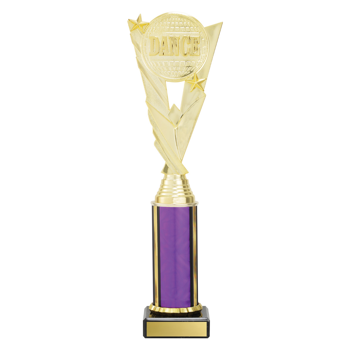 Classic dancing trophies feature bold & dynamic theme perfect for various dance events. Create any number of sizes with column style trophies - choose your colour.