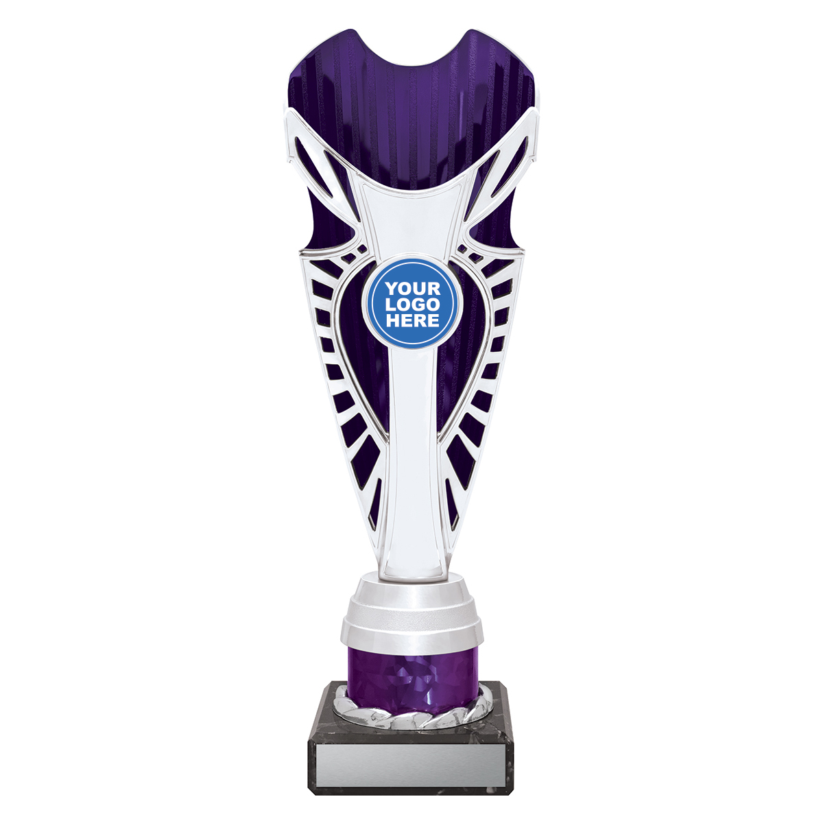 Shine Cups provide an impressive set of trophies with prime position for your custom logo. With different colours available, there is a range of great awards possible to complete your event or presentation.
