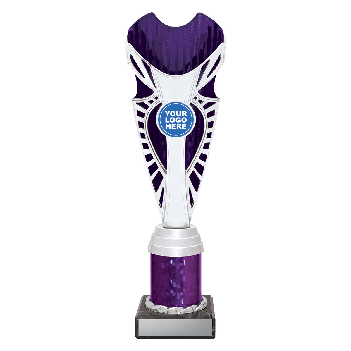 Shine Cups provide an impressive set of trophies with prime position for your custom logo. With different colours available, there is a range of great awards possible to complete your event or presentation.