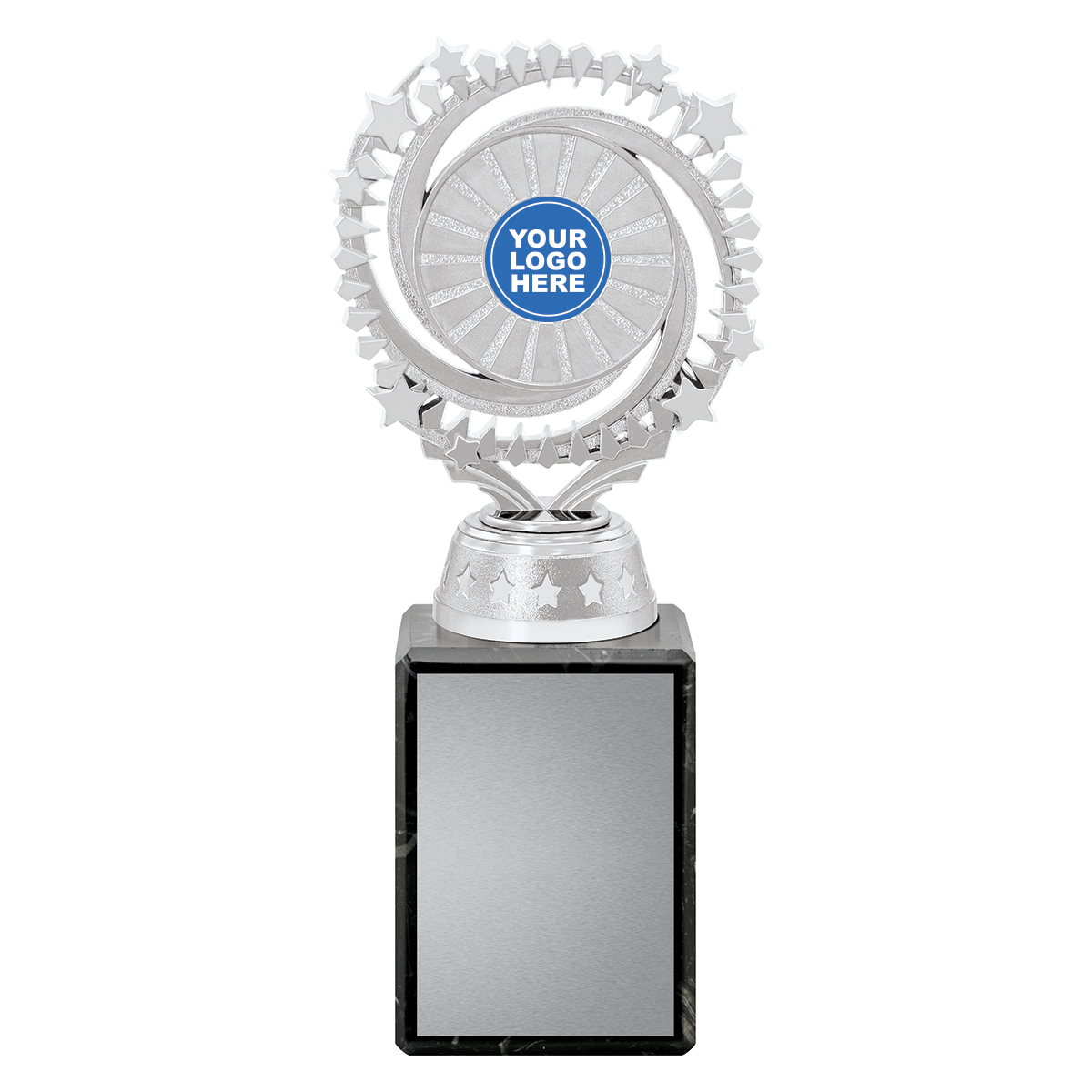 Product DetailsProduct Details Size200mm MaterialPlastic / Marble ColourSilver Width90mm Weight645 g Insert Size25 or 50mm Engraving Area48 x 67mm