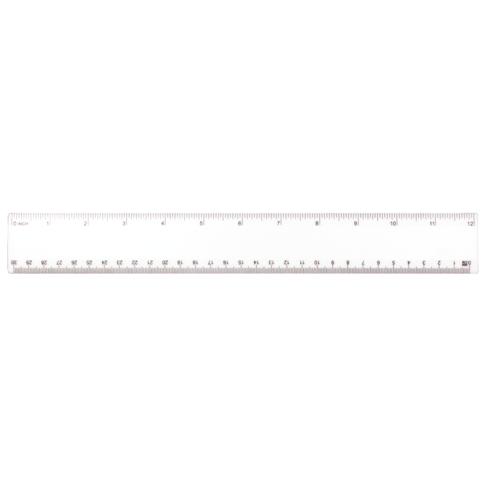 Measure with precision using the durable plastic 30cm ruler, featuring clear measurements in both centimetres and inches. Its smart recessed edge design allows for easy pickup from flat surfaces