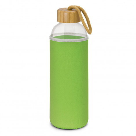Sophisticated 600ml borosilicate glass drink bottle which has a soft insulating neoprene sleeve that keeps drinks cool for longer. It has a trendy screw on bamboo lid with a matching braided carry handle. Borosilicate is a lightweight glass that is exceptionally strong and shatter-resistant. Glass is a natural choice for a clean, pure taste and is a safe and reusable plastic alternative. Eden is not intended to be used with carbonated or hot liquids. Bamboo is a natural material which produces unavoidable variances in the grain pattern, colour and branding. This product is not dishwasher safe and handwashing is recommended.