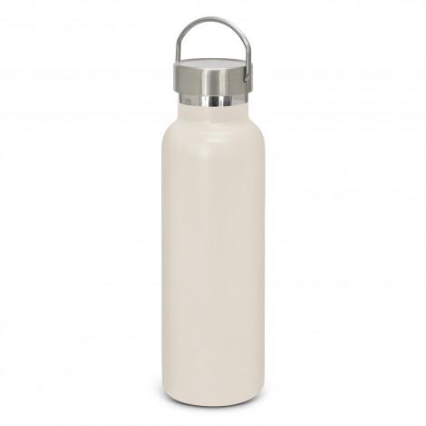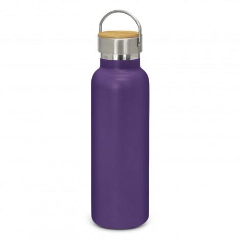 Impressive 650ml BPA-free, double wall, vacuum insulated stainless steel drink bottle which has an extremely durable powder coated matte finish. It will keep drinks cold for 24 hours or hot for up to 12 hours. It has a trendy screw on lid with a stainless steel carry handle that offers a prominent branding opportunity and is available in full stainless steel or with a bamboo veneer. Bamboo is a natural material which produces unavoidable variances in the grain pattern, colour and branding. The lid laser engraves to a natural etch and the bottle laser engraves to a shiny steel finish. It is nicely presented in a black gift box or an