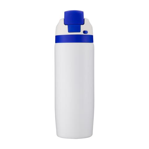 Stay refreshed with the Vibe Drink Bottle – a 750ml powder-coated vacuum bottle designed to keep drinks hot or cold for longer. Its clever combination pour-and-straw lid gives you two ways to drink: sip upright through the straw or tilt back to pour. Just push the button to flip the lid open and press down to lock it shut, keeping the mouthpiece clean and protected from germs. A built-in carry handle makes it easy to take anywhere. Finished in crisp white, the Vibe Drink Bottle is available with a choice of 9 lid colours, all enhanced by its durable powder-coated finish – a versatile and stylish option for promotions, gifting, or everyday hydration.