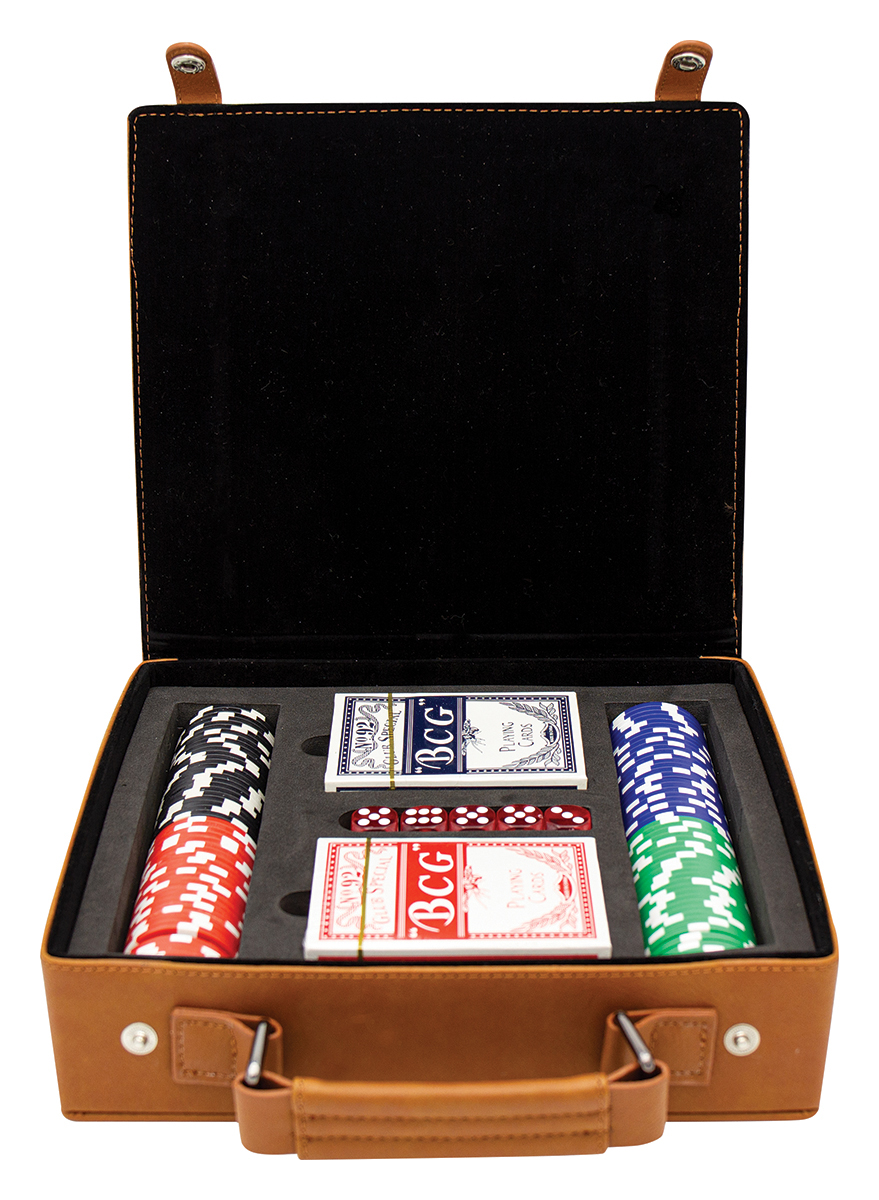 The Poker Gift Set features chips, cards and dice - excellent gift idea for birthdays, anniversaries and holidays. Engrave your special message on top to celebrate the event.