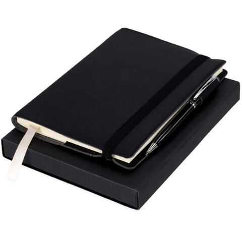 Exclusive design flex cover notebook (80 sheets/ 80gsm lined cream paper) witth integrated pen loop and business card insert on the inside of the back cover.