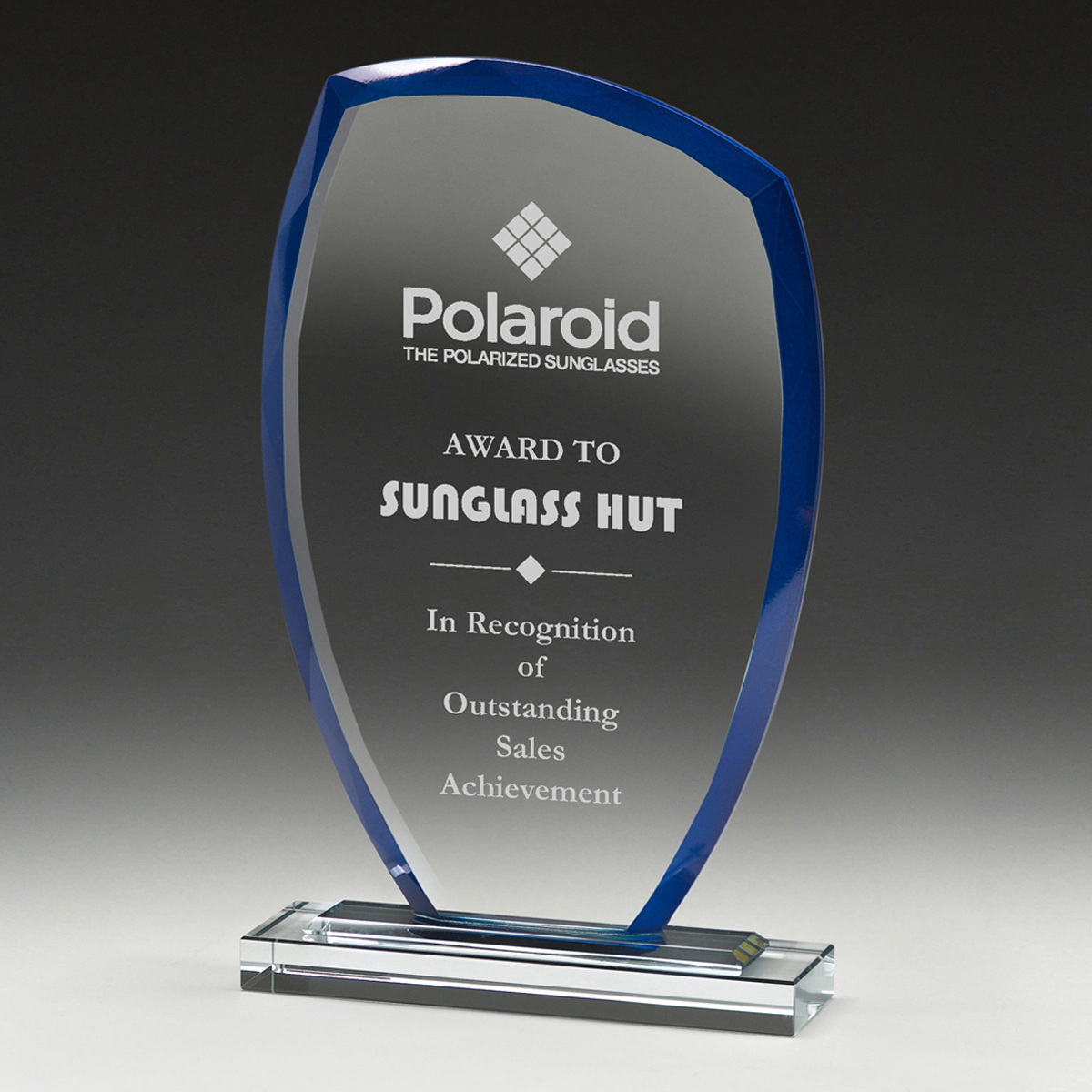 The Blue Alpine Peak provides a distinctive shape in clear quality glass, with artistic facet edges and vibrant blue colour. Glass offers fantastic value to celebrate the success and achievement of your award winners.
