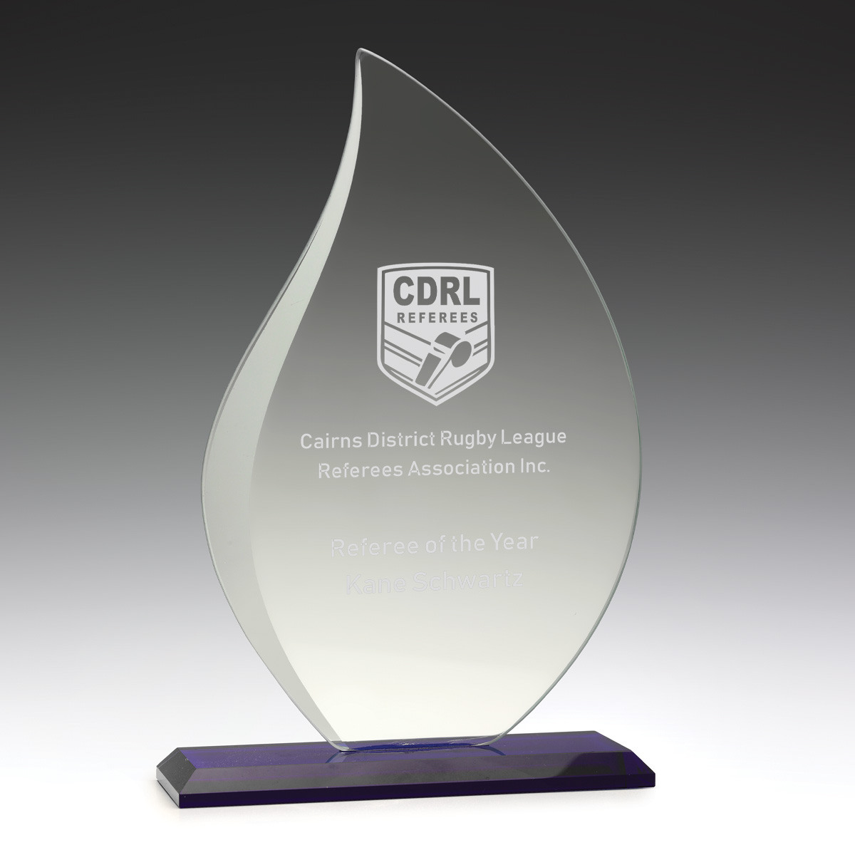 The Glass 'Blue Lotus' Series offers excellent value for glass awards. The elegant design may lend itself ideally to your award presentation. Silver mirror highlights makes this trophy a stand-out.
