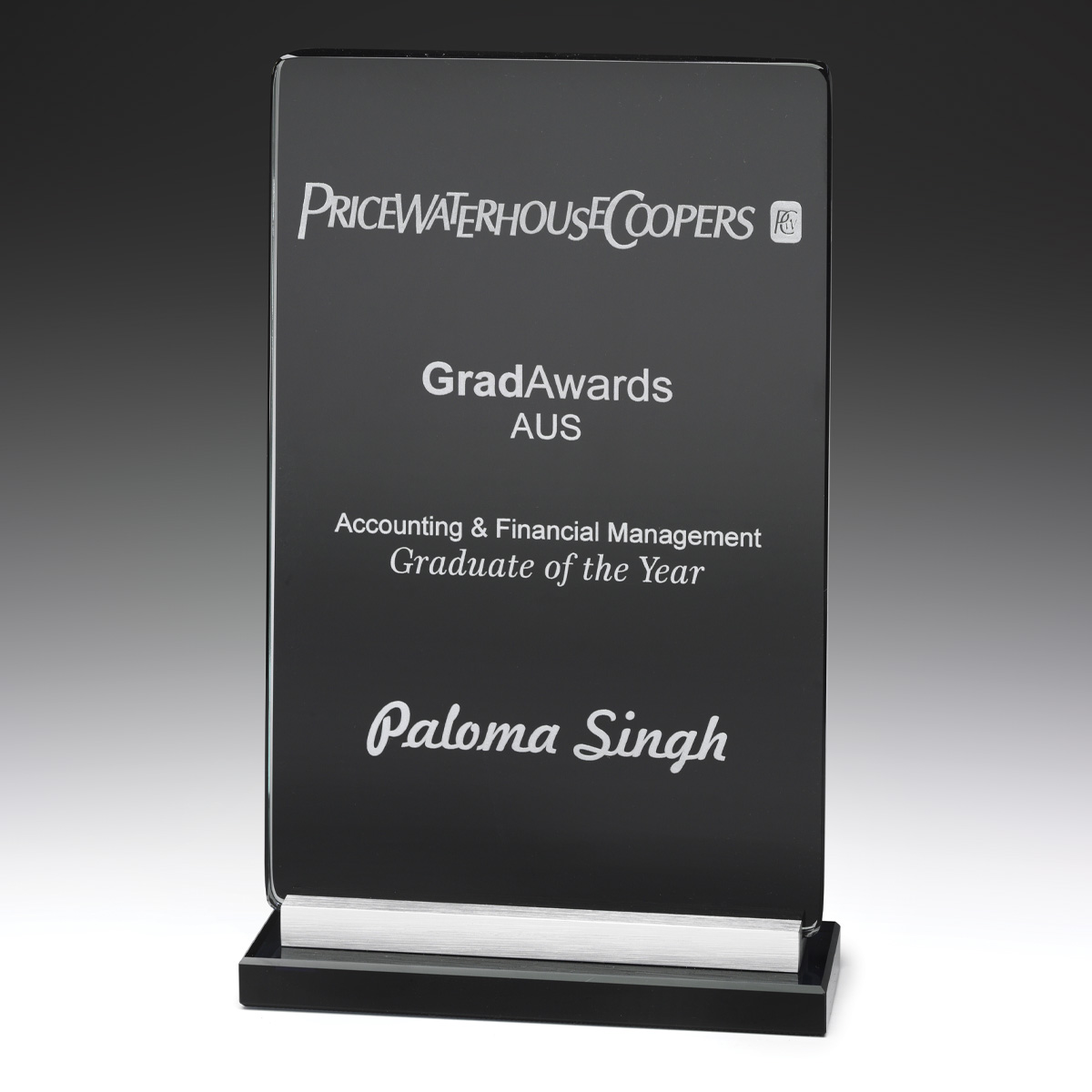 With an imposing design, the Glass Black Broadside is sure to make a bold statement at your awards event. The black panel element in the design of the award elevates the quality of engraving. The brushed metal base element adds to the appeal of the design. Supplied in Gift Box.