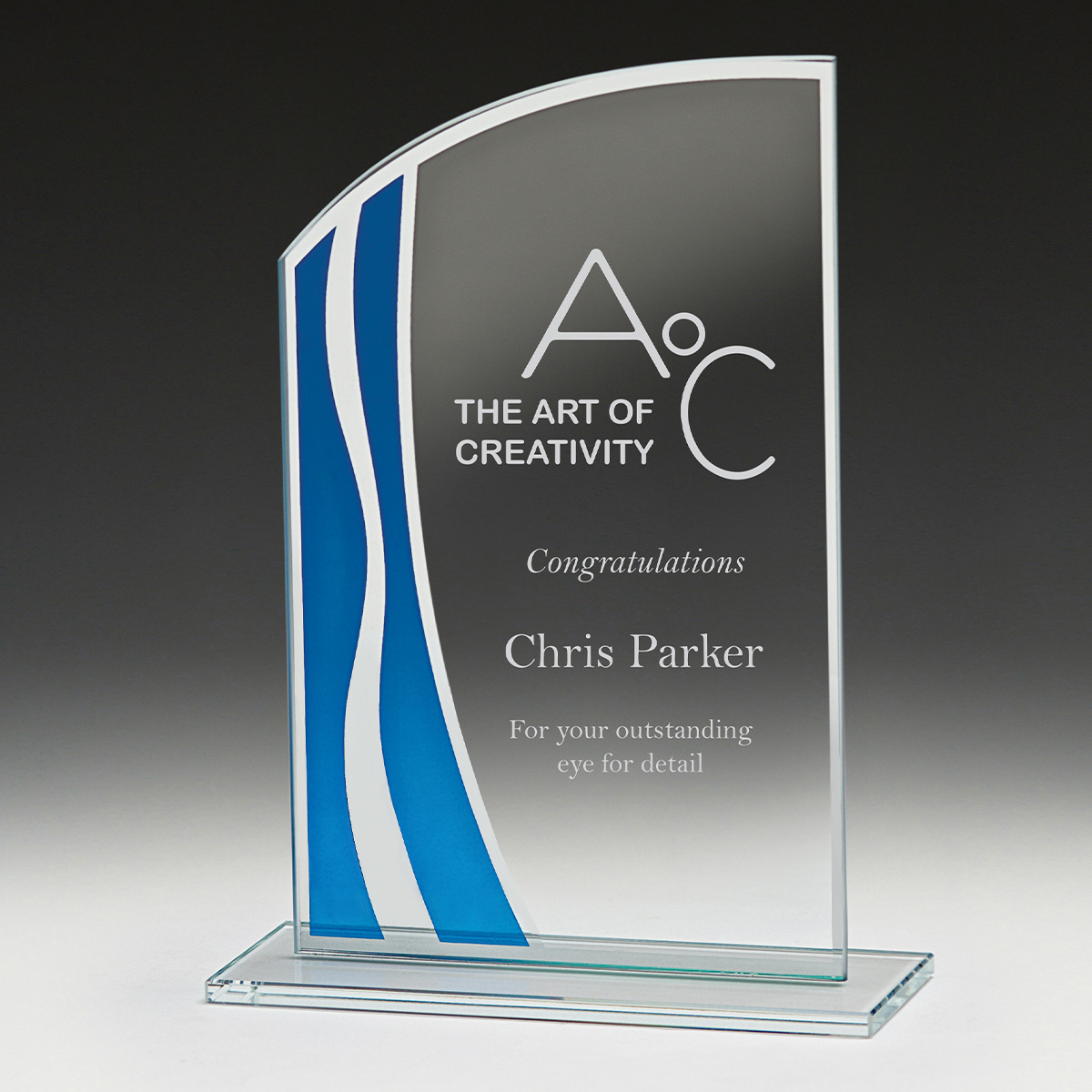 Affordable series of glass awards, Neo allows you to provide a budget yet elegant trophy, with stylish blue accented design features, to your award recipients.