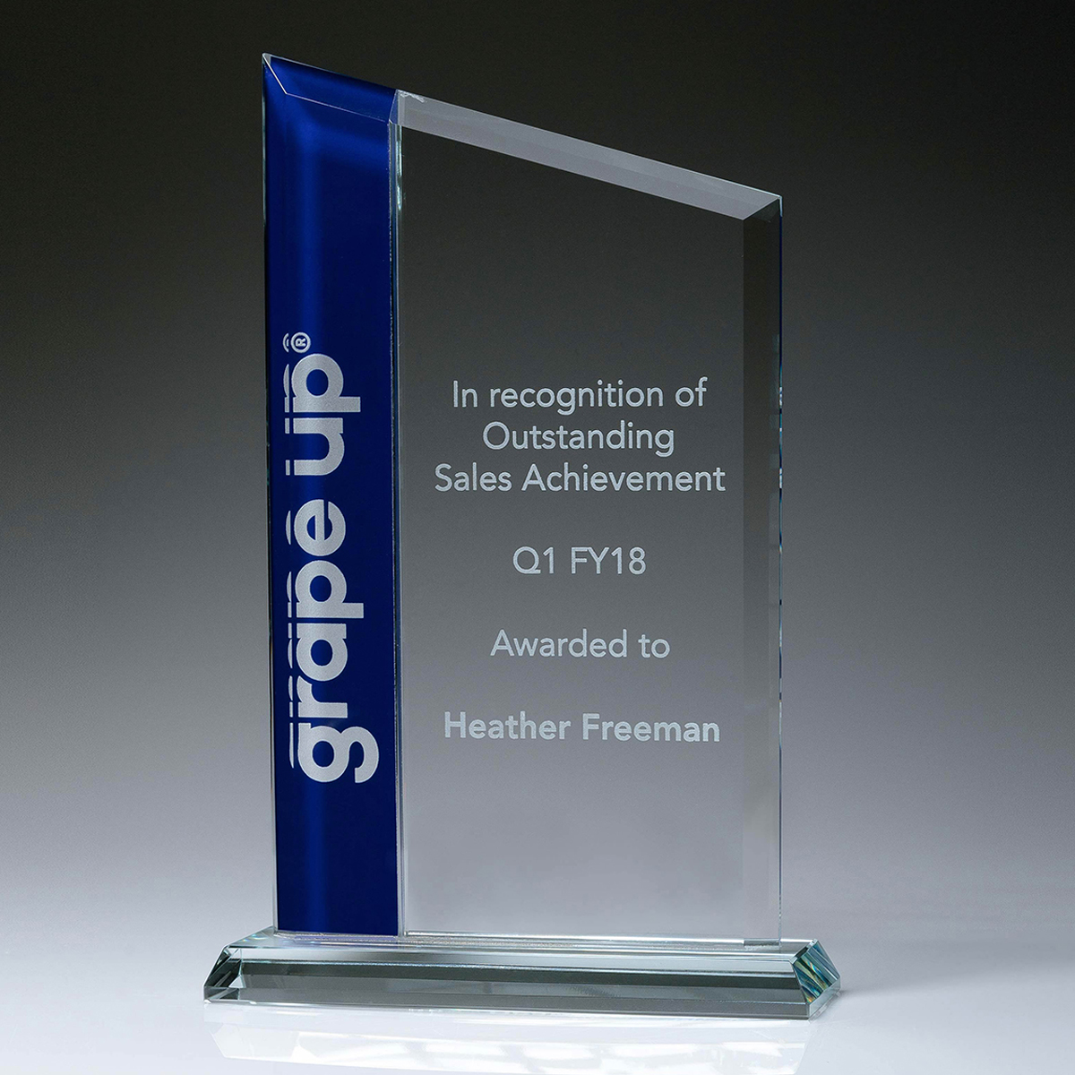 The Radiance Peak Blue design makes available a distinct blue panel that will allow for excellent engraving. Clear glass always presents a premium style of award. The series comprises 2 great sizes and awards are supplied in gift boxes.