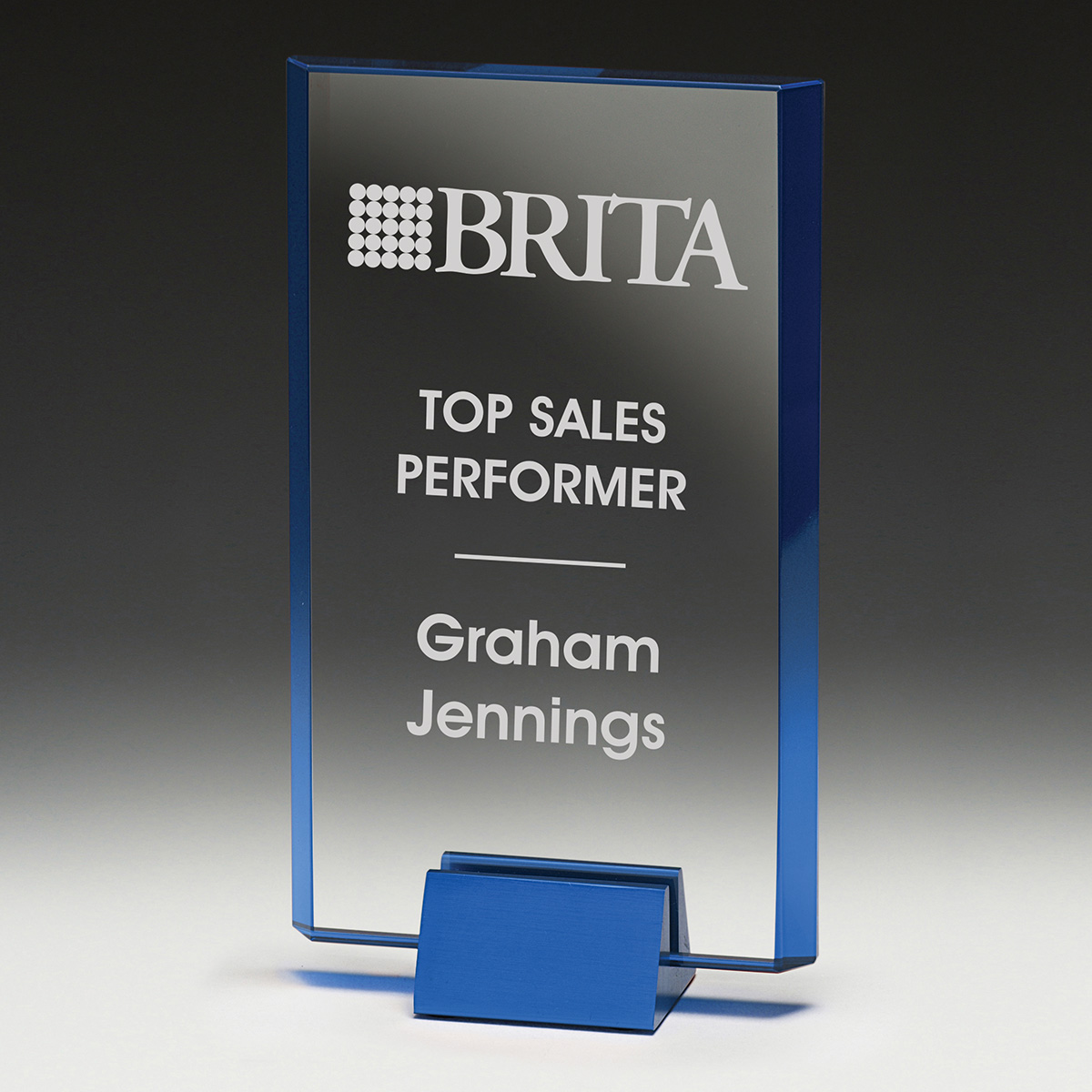 Cutting edge awards with brushed metal base and coloured edges, the Sentry provides a bold award design to celebrate the achievements of your award winners.