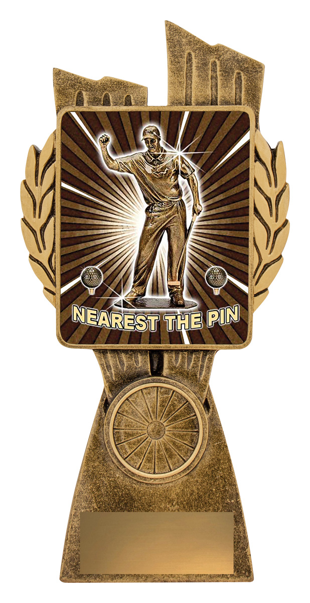 This Antique Gold Lynx Trophy is the perfect award for Nearest the Pin competitions at your golfing event. Featuring a classic wreath and vibrant design, Golf trophies are customisable and available in 4 impressive sizes.