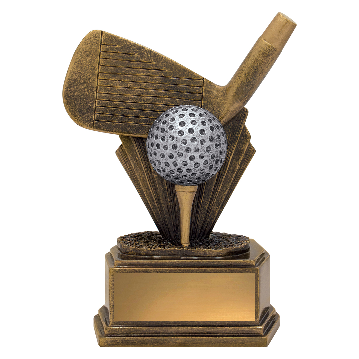 Series of expertly finished golf club trophies perfectly placed for various golfing awards for your event or competition.