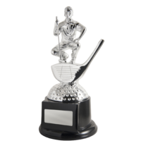 Series of 3 sizes, golf trophies feature a classic and elegant design that highlights the Golf Iron club. Finished in brilliant antique silver, the design offers a prestigious award alternative for various golf events and competitions.