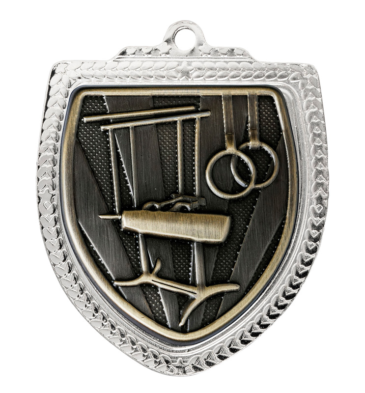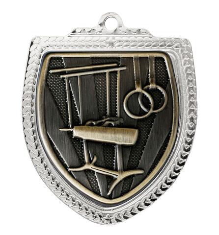 Shield Medal - Gymnastics Silver-Antique Gold 80mm