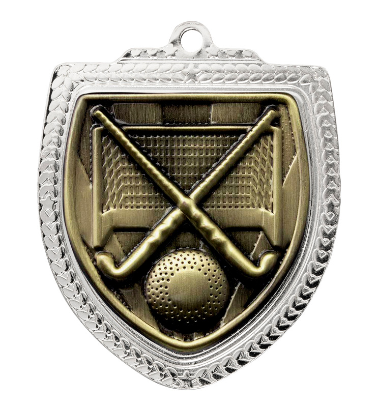 Shield Medal - Hockey Silver-Antique Gold 80mm