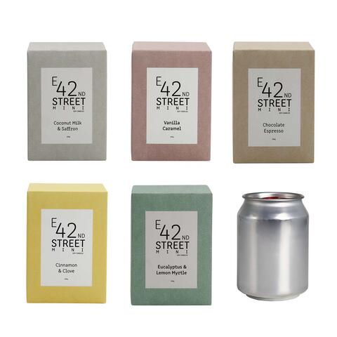 The Mini East 42nd Street Can Candle offers a charming take on the classic candle in a can. Made from 100% soy wax and housed in a sleek silver tin, it delivers a beautifully scented experience. A great addition to hampers or gift sets, this compact candle is ready for your custom branding, making it a thoughtful gift your clients will appreciate.