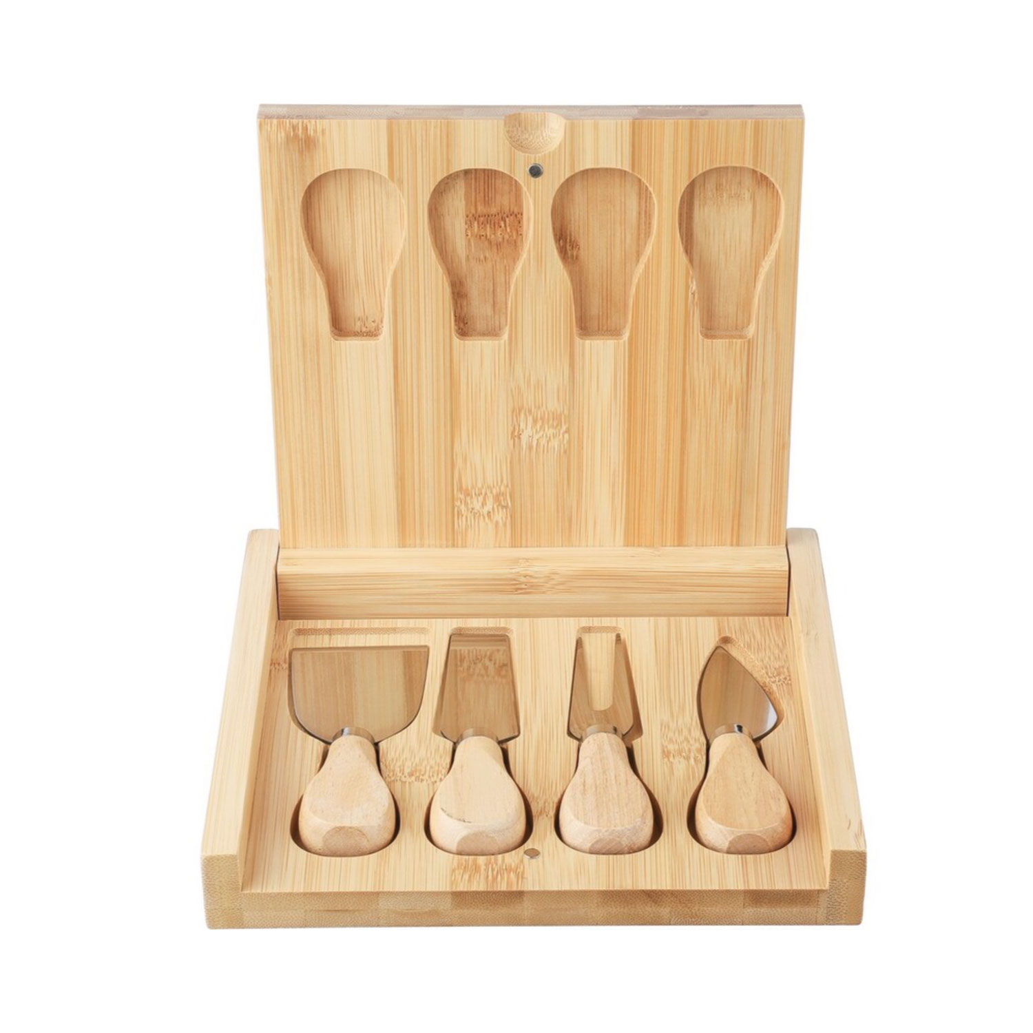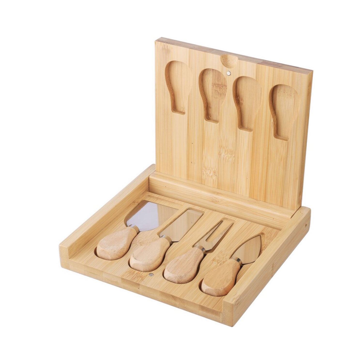 The ORION Bamboo Cheese Board Set is an elegant and eco-friendly solution for serving and entertaining. Made from sustainable bamboo, this foldable cheese board includes four stainless steel cheese tools neatly stored in a hidden compartment. Its smooth bamboo surface is perfect for slicing, cutting, and presenting cheeses, charcuterie, or appetizers. Compact, durable, and beautifully crafted, the ORION set is ideal for home gatherings, special occasions, or as a thoughtful promotional gift.