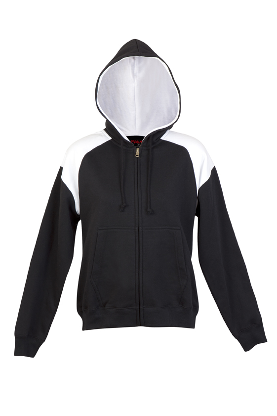 320 gsmPoly cotton brushed fleeceShoulder contrast with matching inner hood liningZip through